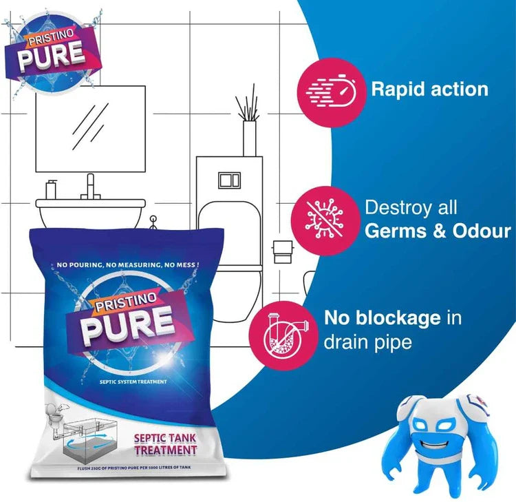 Pristino Pure Combo Pack — Septic Tank Cleaner Powder(500G) + Toilet Foam Cleaner (4 x 150g)